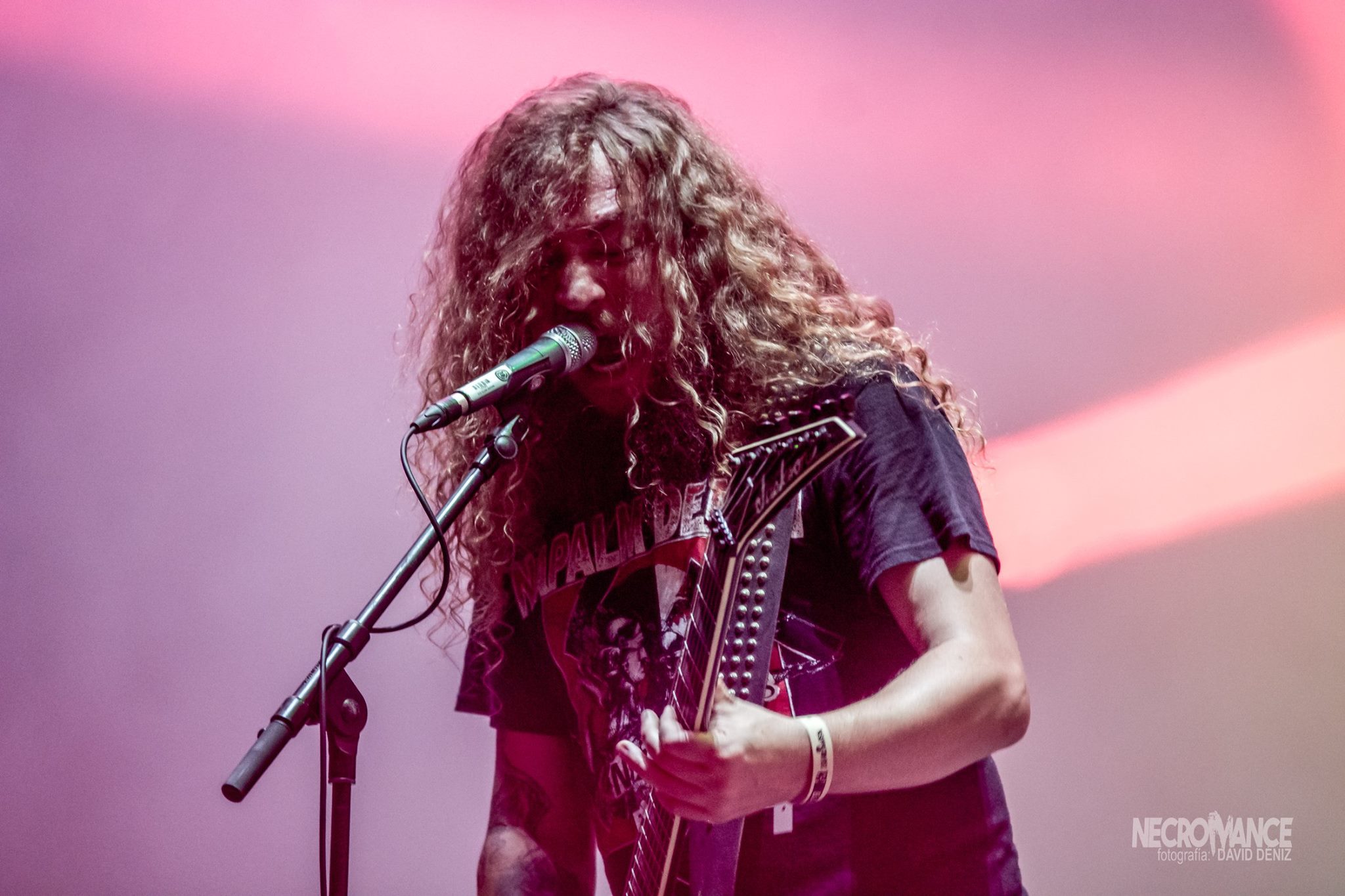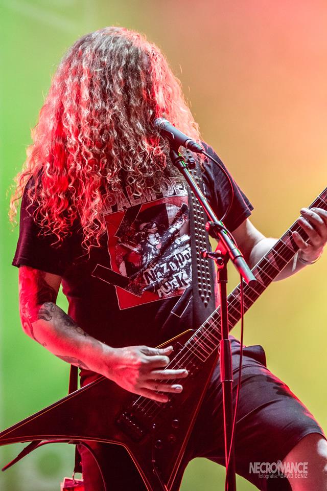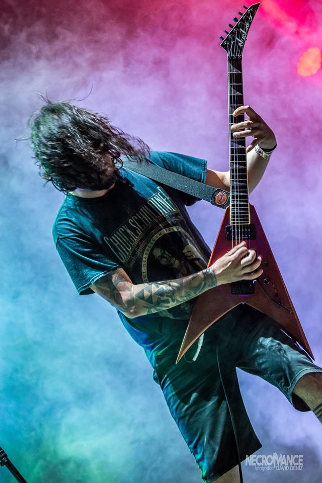 Tras unos minutos de retraso donde la banda estuvo intentando probar sonido, se presentaba el cuarteto sin su batería hospitalizado semanas antes y con Adrián Perales de IN MUTE haciendo su labor, que defendió de forma extraordinaria. Pese al mal sonido de los temas iniciales, lo que estaba claro es que el público tenía ganas de tralla y ANGELUS APATRIDA de eso saben y mucho, son ya seis ediciones en las que la banda ha estado en el festival y son una de las bandas fetiche del público y que siempre responden con una parte delantera del escenario de lo más activa, con muchísimo mosh, circle pit y, cómo no, wall of death. El set list fue variado así cayeron temas de su nuevo álbum “Cabaret The La Guillotine”, “Hidden Evolution” alguno más clásico recordando esos seis años de paso por el festival y finalizando con el temazo “You Are next”. Una buena actuación algo empañada por el mal sonido en las primeras canciones, lo que valió la queja pública de Miguel por no poder probar sonido previamente o la hora a la que los hacían tocar, pero que conforme fue avanzando el set, sonó bastante bien, consiguiendo un buen concierto.