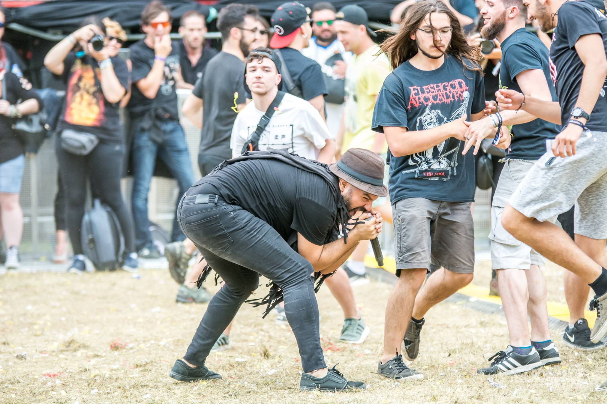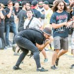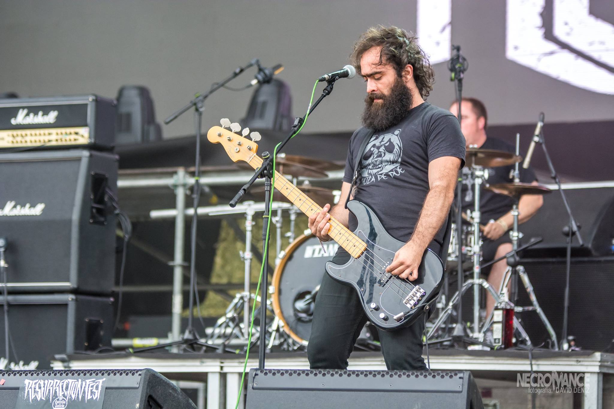 Nos giramos a nuestras espaldas para asistir a medio concierto de PANDEMIA, donde su vocalista/guitarra, Rober tuvo que dar el concierto sentado por una lesión de rodilla pero que no quería perderse esta gran oportunidad y la verdad es que cumplieron con creces, animando en todo momento y realizando algunos circles pits como el que se formó alrededor de Elder (guitarra) que se bajo del escenario para animar a la peña. Un breve paso por la cúpula, para ver y descubrir el intenso y frenético screamo de BONEFLOWER, que estuvieron geniales, dejándose la piel el trío formado por Eric, Desan y Jaime y demostrando una vez más que en el Resurrection Fest la letra pequeña importa mucho.