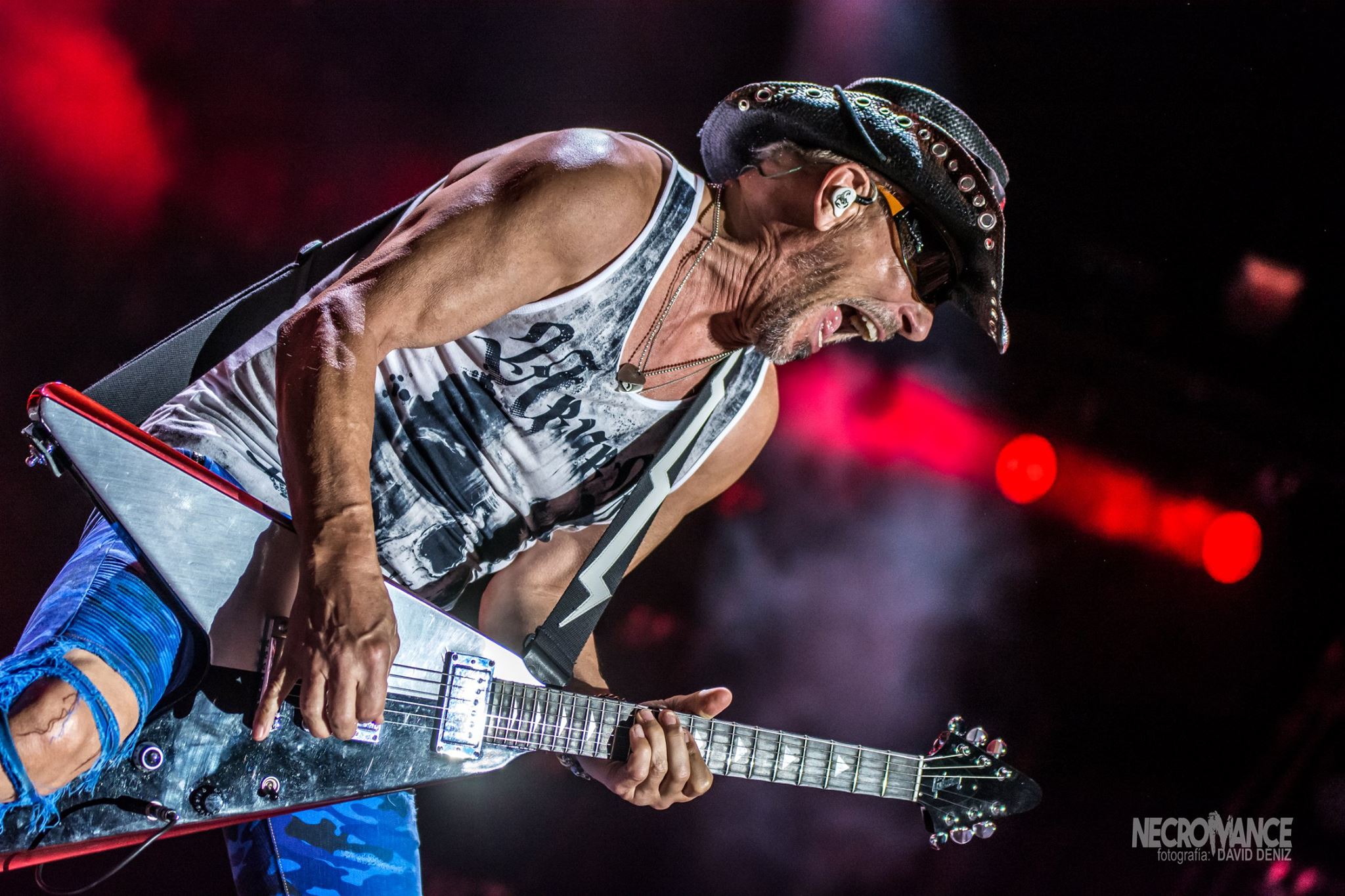 SCORPIONS, un clásico de todos los tiempos hacia acto de presencia en un escenario principal abarrotado con “Going Out With A Band” y es que la banda alemana por excelencia con Klaus Meine y Rudolf Cshenker al frente demostraron que están más en forma que nunca, además de contar con la presencia de Mikkey Dee en la batería ex–MOTORHEAD, dándole un merecido homenaje a Lemmy, interpretando “Overkill” en un momento mágico y emotivo inmortalizado por miles de móviles que grababan el corte e iluminaban la noche. Aunque para mi gusto personal los efectos audiovisuales en las pantallas como la bandera de España, un filtro de rejilla o el color sepia eran demasiado retros y un poco kirsch, dieron un autentico concierto de hard rock con un setlist increíble y sin faltar temas como “Big City Nights”, las inmortales “Still Loving You”, “Rock You Like A Hurricane”, “Send Me An Angel” o “Wind Of Changes”.