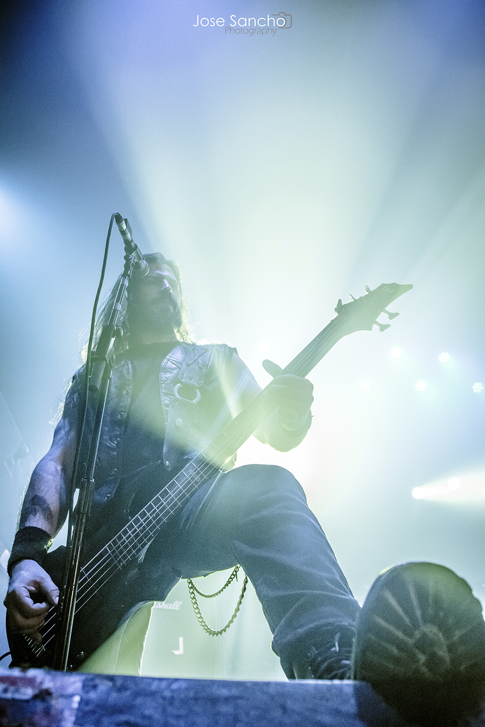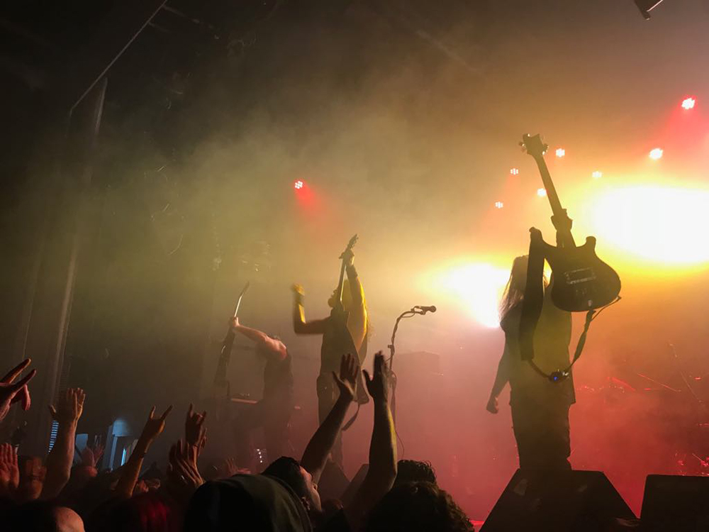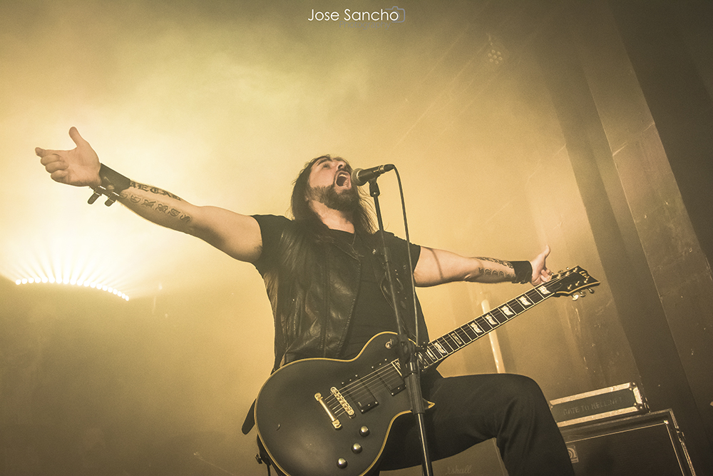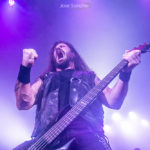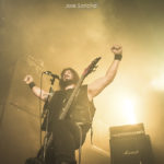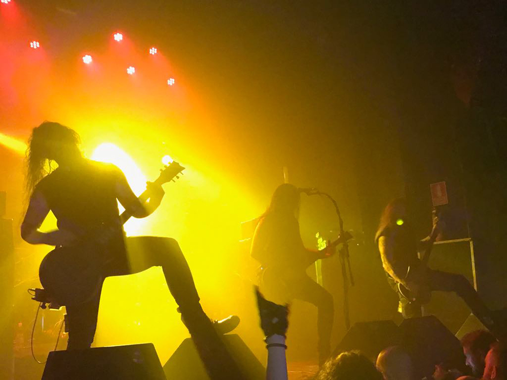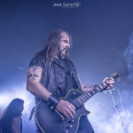 Para terminar y con mucho calor en la sala, salieron por fin sobre el escenario los helenos ROTTING CHRIST que se retrasaron unos minutos. Como no podía ser menos, arrancaron con uno de los canticos de su último álbum “Rituals”, concretamente “Devadevam”. Nada más empezar el tema se podía intuir que iban a ser los grandes triunfadores de la noche, sobre todo en lo que se refiere al sonido que fue aplastante durante toda su actuación. Siguieron con “Kata Ton Demona Eautou” guitarras potentes y agresivas a cargo de Sakis que se metió al público en el bolsillo. Seguidamente tocaron “Demonon Vrosis” de su trabajo “Aealo” que es un tema un poco más lento y donde hay más punteos de guitarra acercándose a la época gótica de la banda. Con “Elthe Kyrie” consiguieron poner la sala patas arriba destacando a los hermanos Tolis (tanto Sakis a las guitarras como a Themis a la batería) sonando de fondo las voces femeninas y los cánticos. Después recitaron su “Apage Satana” con iluminaciones rojas de fondo y puesta en escena por parte de Sakis, Van Ace (bajista) y George Emmanuel (guitarra) de brazos cruzados animando al público a corear los rezos. Acto seguido pasaron a un par de clásicos “The Sing Of Evil Existence” y “Transform All Suffering Into Plagues” de su conocido trabajo del ’93 “The Mighty Contract” que siendo sincera, me resultó un poco extraño porque estoy acostumbrada a oírlos con las voces más rasgadas, y evidentemente después de 25 años, ni se tocan igual, ni se cantan igual. Cayó otro gran clásico de su EP “Passage To Arcturo”, el “Forest Of N’Gai” con un sonido atronador. Y como no podía faltar después de tantos clásicos, vino la versión de la otra banda de Sakis THOU ART LORD “Societas Satanas”, donde él mismo pidió al público hacer un Wall Of Death que siguió con un gran pogo en toda regla en mitad de la sala. Luego comenzaron con los susurros de “In Yumen/Xibalba” y los acordes agresivos de guitarras, que seguía animando al público que ya estaba en el punto más álgido de su euforia. Los helenos anunciaron el último tema de su actuación “Grandis Spiritus Diavolos” y pidieron participación por parte de los que asistimos. Pero ahí no quedó la cosa porque hicieron un par de bises para deleite nuestro, “X Ξ Σ – 666” que es uno de los temas más conocidos de sus últimos discos, y para terminar su gran actuación otro gran clásico “Non Servian”.