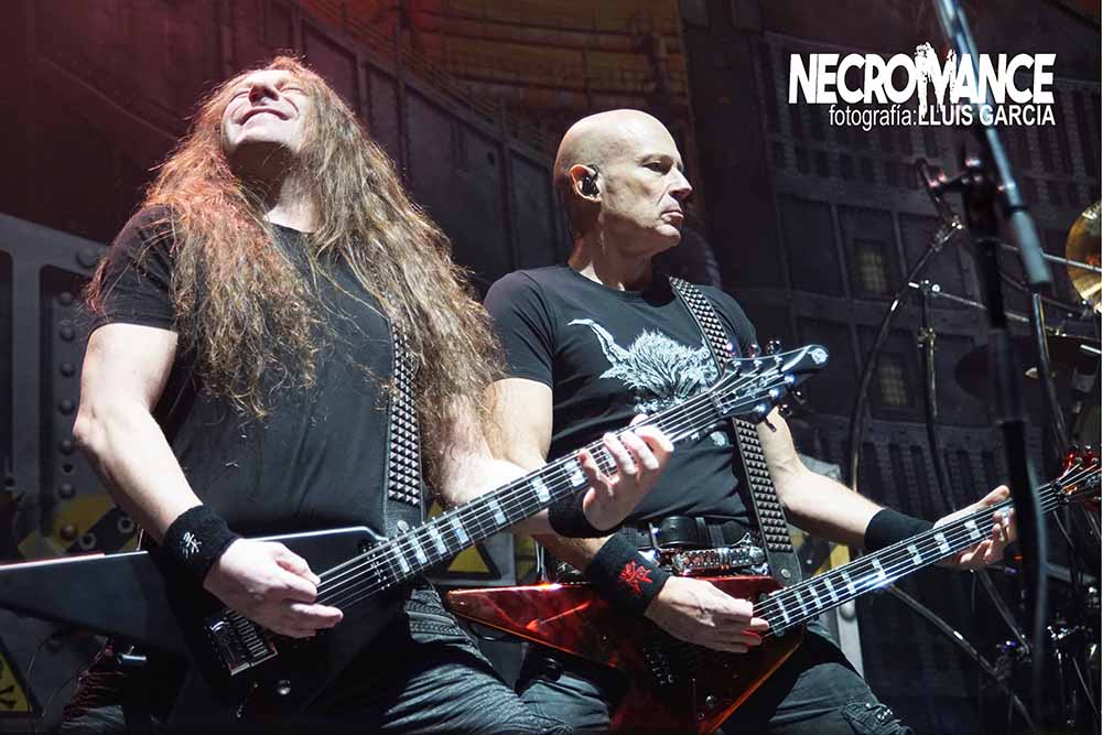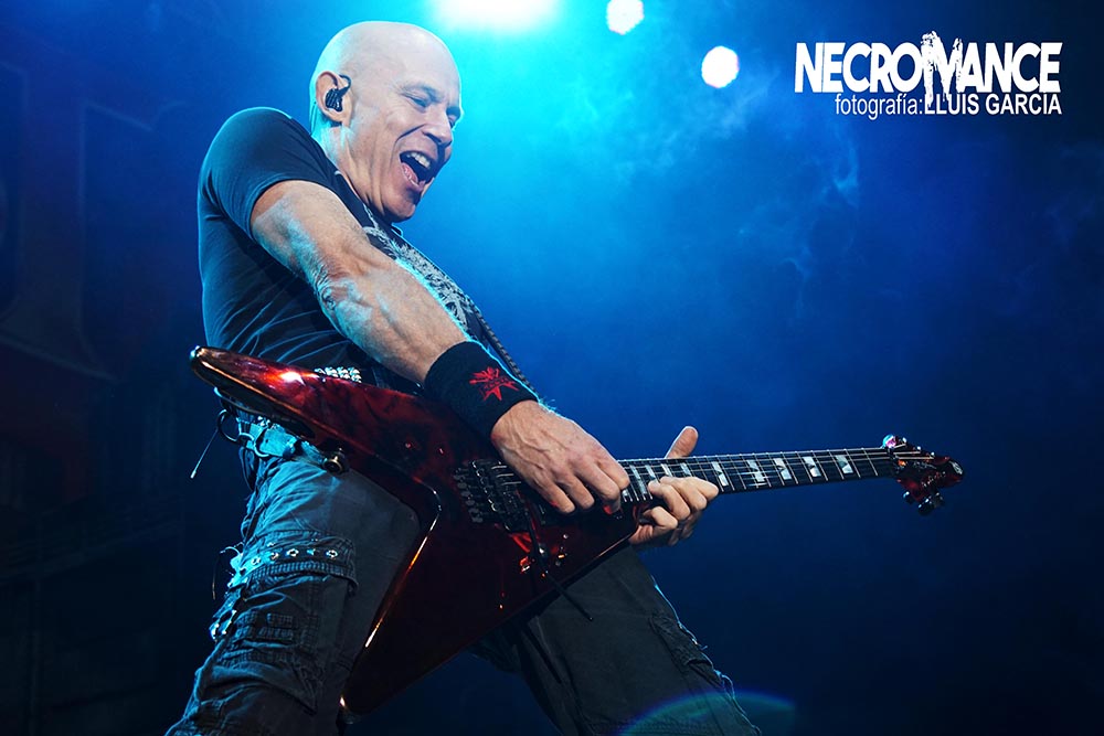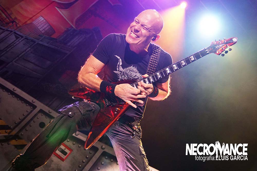 Llegaba el turno de uno de los platos fuertes de la noche con la aparición en el escenario de los germanos ACCEPT, historia viva del Heavy Metal, y que cuando se anunció la presente gira hizo que más de un metalero de la vieja escuela se tirara de los pelos (y la melena) al ver el orden del cartel. Abrieron con dos de sus recientes éxitos, “Stampede” y “Stalingrad”, antes de hacer enloquecer a la audiencia con el primero de sus clásicos, “Restless and Wild”, en la que el engranaje de esa maquina de acero que comandan Mark Tornillo y Wolf Hoffmann, vocalista y guitarra respectivamente. Activos, cañeros y dueños del show encima de las tablas, haciendo gala de su enorme maestría y la conexión que despiertan en el público, jóvenes y no tan jóvenes, con absolutos hits como “Princess of the Dawn” o la veloz “Fast as a Shark”. ¿Qué más se puede pedir?