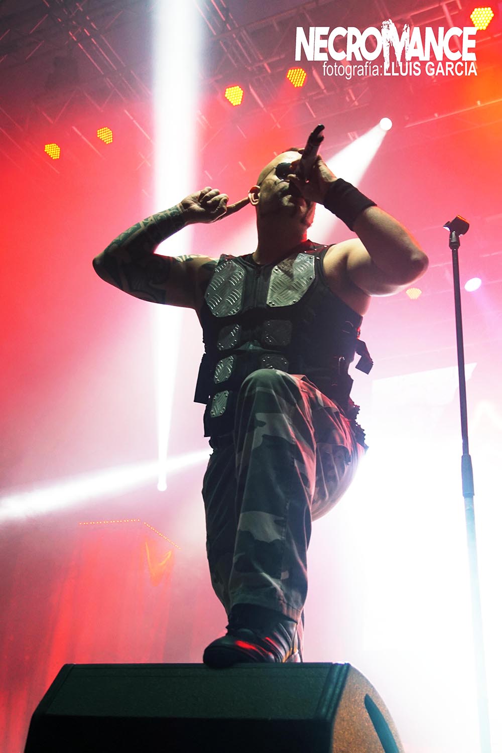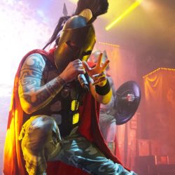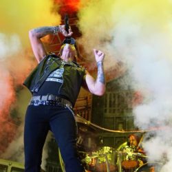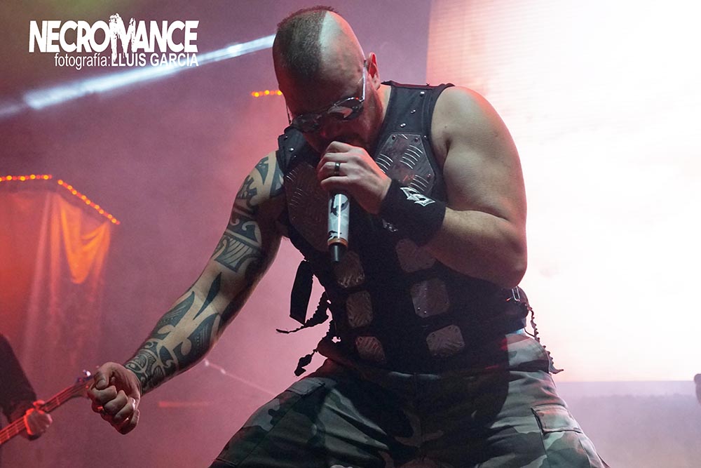 Al ritmo del mítico “In the Army Now” de BOLLAND & BOLLAND, con unos soldados haciendo acto de presencia encima del escenario dando paso a la intro “The March to War”, arrancó la gran actuación de los suecos SABATON. “Ghost Division” estalló con el tanque principal que compone la puesta en escena de la banda, con un carismático y brillante Joakim Brodén vestido cual espartano para presentar el próximo corte, “Sparta”. Increíble la energía y buen rollo que destilan los nórdicos en cada momento del show, logrando una química perfecta con todo su público, y el que se ganarían esa misma noche. Y gran culpa de ello lo tienen cañonazos como “Swedish Pagans”, “The Last Stand” o “Carolus Rex”, que iban desgranando un setlist impecable en un primer acto absolutamente demoledor con un trabajo excepcional en cada riff que surge de las guitarras de Chris Rörland o, la reciente incorporación, Tommy Johansson. Por cierto, éste último protagonizaría un divertido y espontaneo monólogo junto a Brodén y su “fill de puta”.